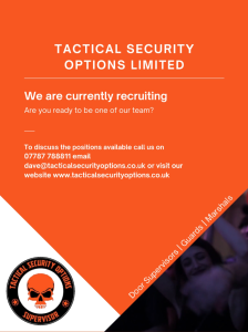 Mr. Ian Dean Manned Guarding Site Supervisor Security Guarding Section Dear Mr. Ian Dean, On behalf of Tactical Security Options Ltd, we would
